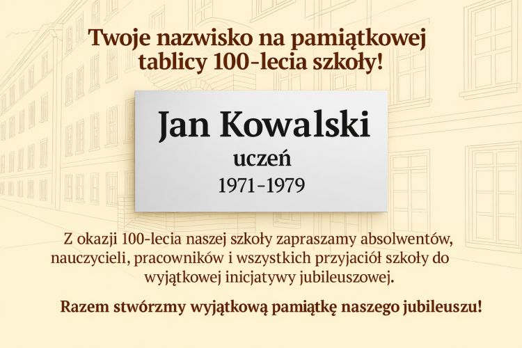 - Twoje nazwisko na pamiątkowej tablicy 100-lecia szkoły!