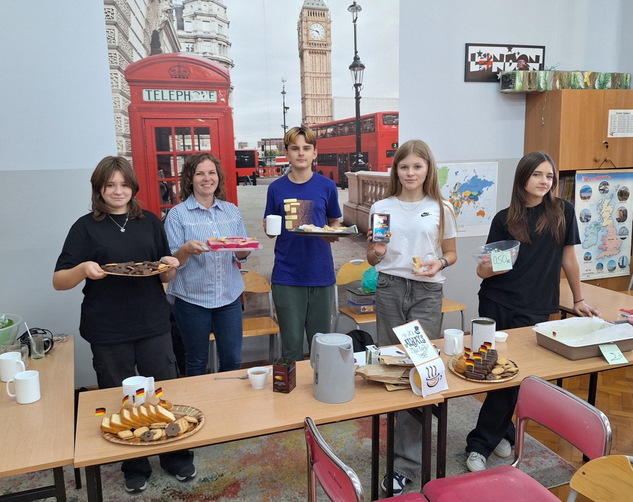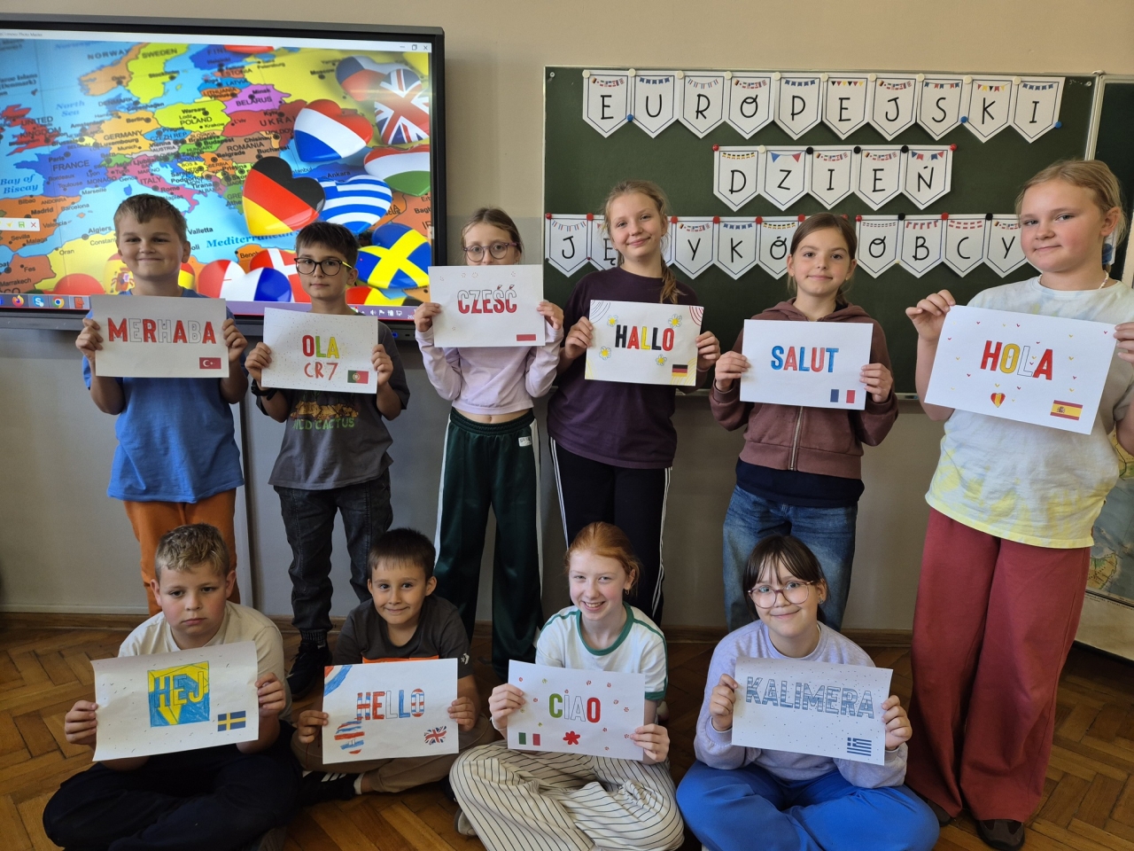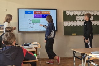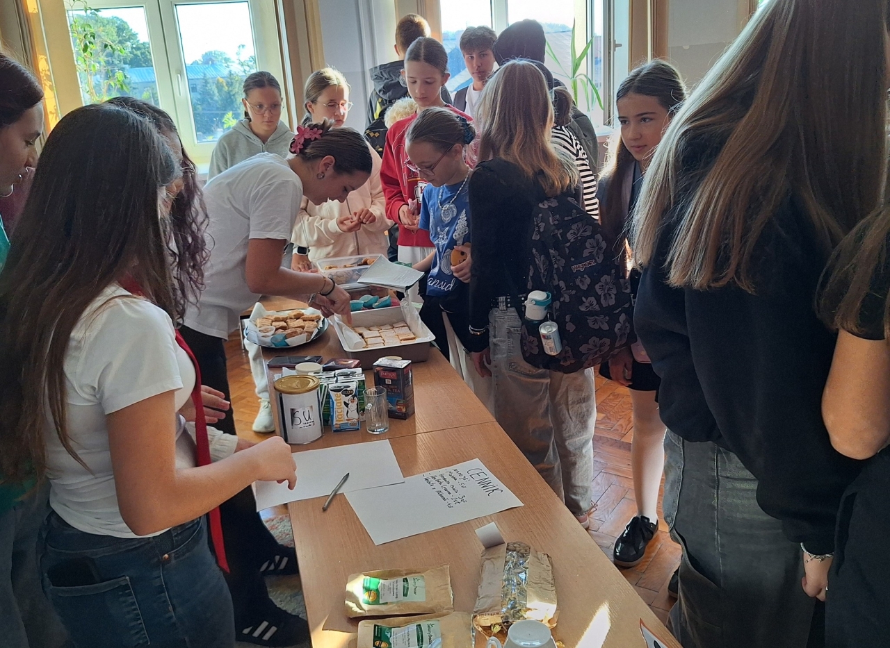 Dodatkowo na wszystkich uczniów czekały quizy wiedzy o państwach i językach europejskich, a także poczęstunek przygotowany przez Samorząd Uczniowski. Całość wydarzenia przebiegła w radosnej i barwnej atmosferze, łącząc naukę z zabawą i smakiem.